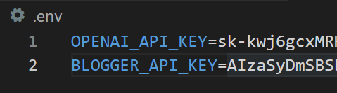 별거 안했는데 벌써 절반이나 했습니다. 이제 여기서 생성한 api key를 가지고 개발환경으로 돌아갑니다. 앞서 언급한 것처럼 dotenv와 readline 라이브러리를 설치합니다.