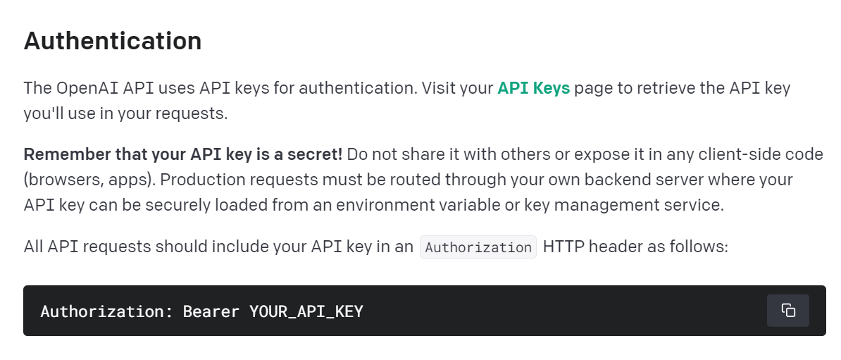 GPT-3 API도 openai의 API이기 때문에 너무나 당연하게도 API key가 필요합니다. 같은 페이지(API reference)의 Authentication에 있는 API Keys를 클릭합니다.