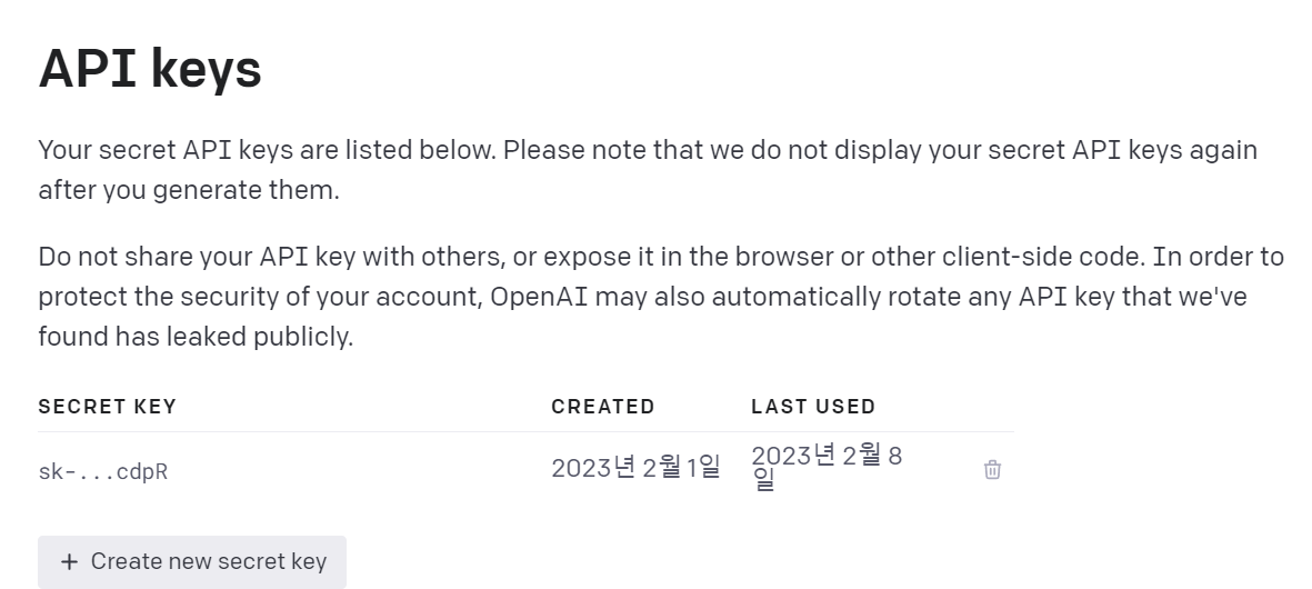 1번은 조금 아쉽지만, 2번을 통해 1번이 해소되는 느낌입니다. 추측컨데 chatGPT API가 나온다고 하더라도, model 이름만 변경되지 않을까 생각합니다. 이것으로 이 포스팅은 마무리하겠습니다.