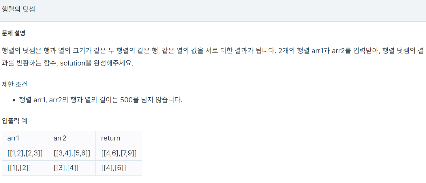 두 행렬의 같은 요소를 더해주면 되는 문제입니다. 매우 간단하므로 예시를 작성하되 자세한 설명은 생략합니다.