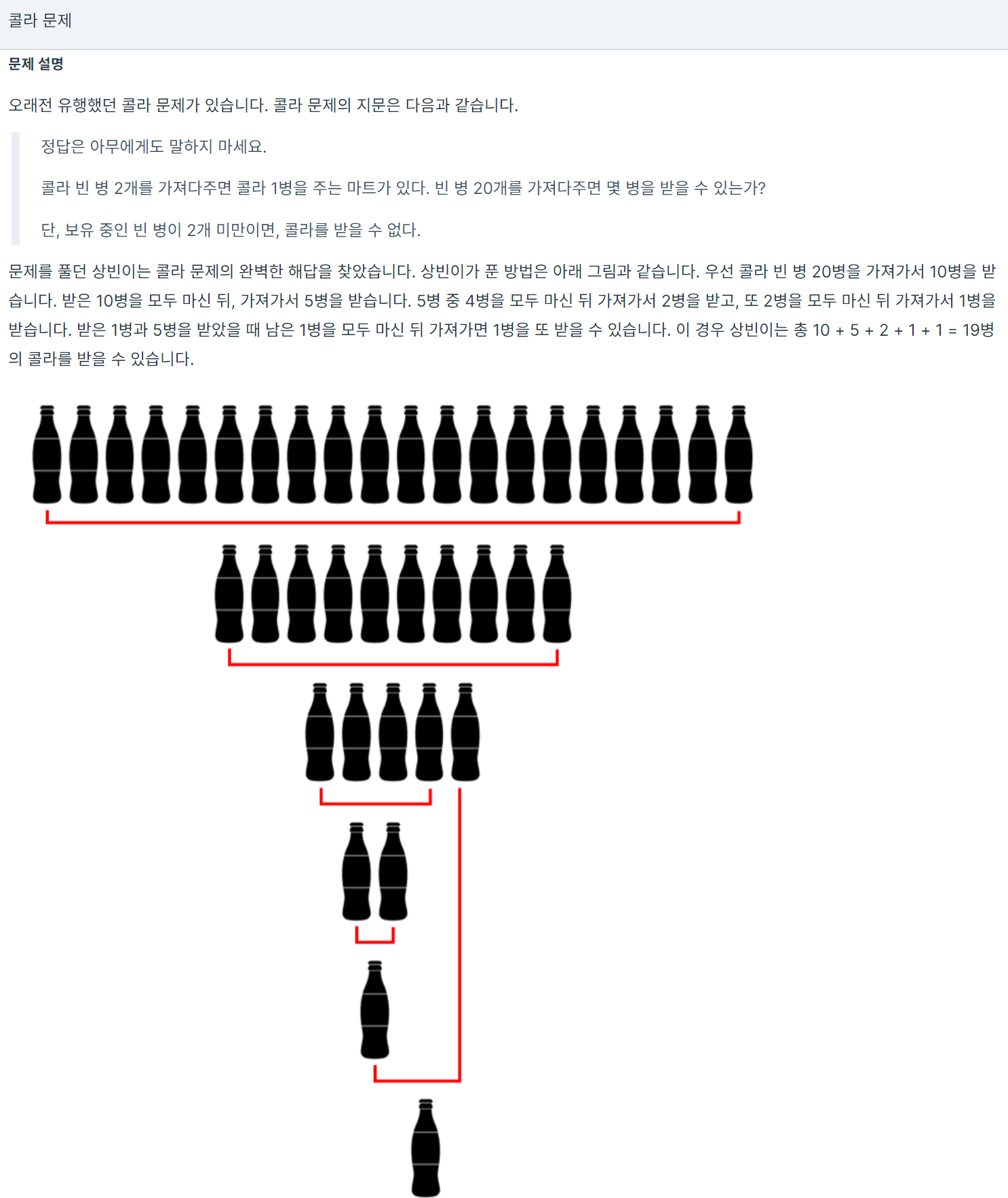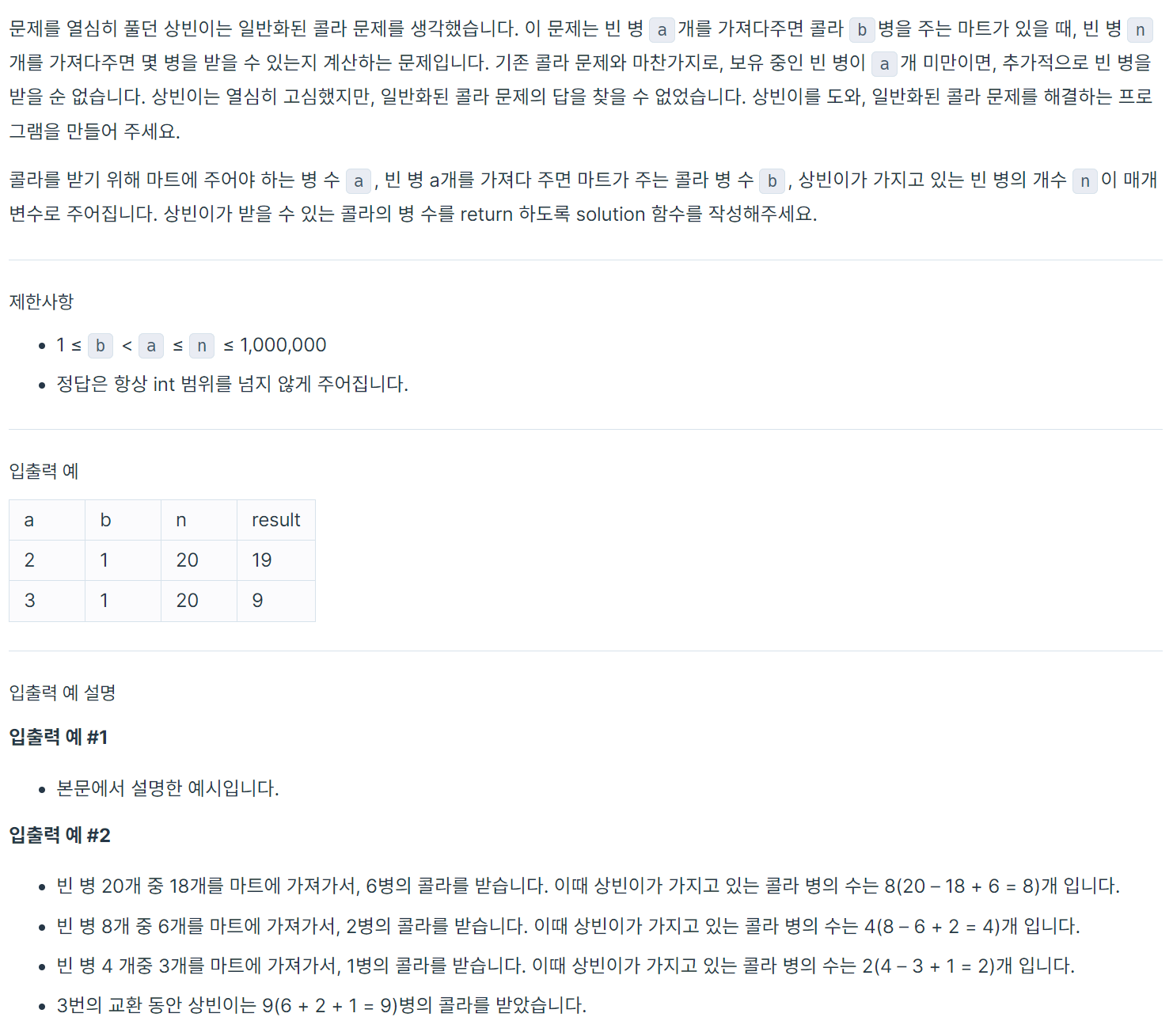 이 문제는 옛날 콜라 문제의 2, 1 자리에 a, b를 넣으면 해결되는 문제입니다.