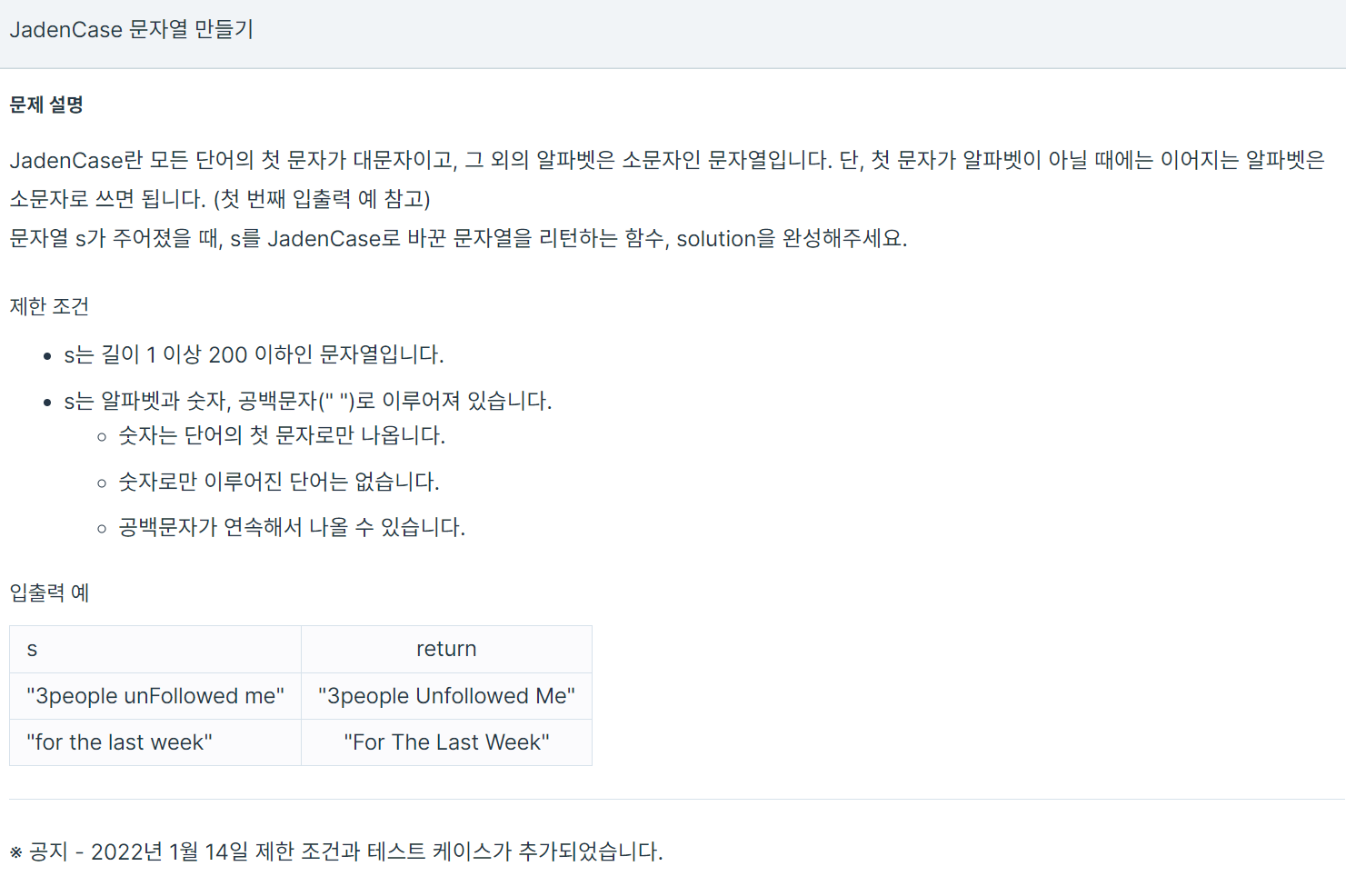 이 문제는 각 문자를 탐색하면서 조건에 부합하는지 확인하는 문제입니다. 여러 형태로 접근할 수 있겠지만, 저는 한 단어의 구분을 공백으로 보기로 했습니다.