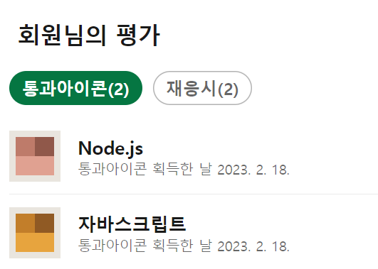 아, 링크드인 스킬 테스트도 JS와 nodejs 두 가지를 패스했다.