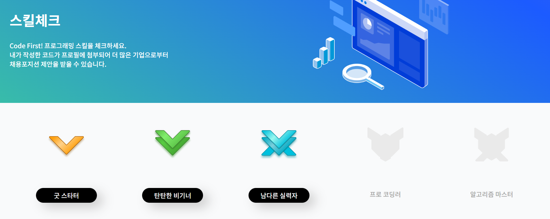 오늘은 프로그래머스 스킬체크 level 3를 달성했다.