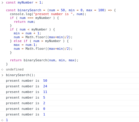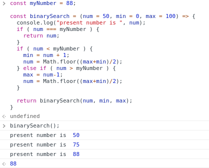 const binarySearch = (num = 50, min = 0, max = 100) => {