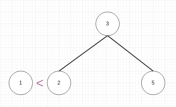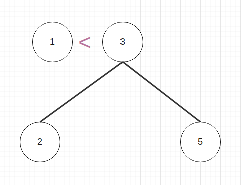 1은 3보다 작기때문에, 3의 자식노드 중 작은 값인 왼쪽노드로 내려간다.