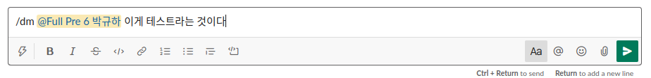 우측 하단의 Send버튼을 누르거나, 설정에 따라 Enter 혹은 Ctrl + Enter 해주시면 @someone과의 DM으로 바로 이동됩니다!