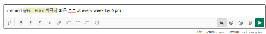 저는 평일 저녁 6시마다 퇴근알림을 받기 위해 위 사진과 같이 입력했습니다!