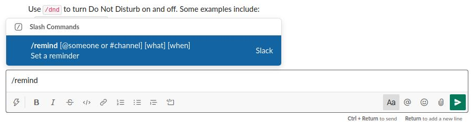 이외에도 상태를 바로 변경할 수 있는 /active, /away, Do-Not-Disturb를 설정할 수 있는 /dnd 기능 등 다양한 기능이 탑재돼 있으니 슬랙에서 /를 쳐서 확인해보세요!