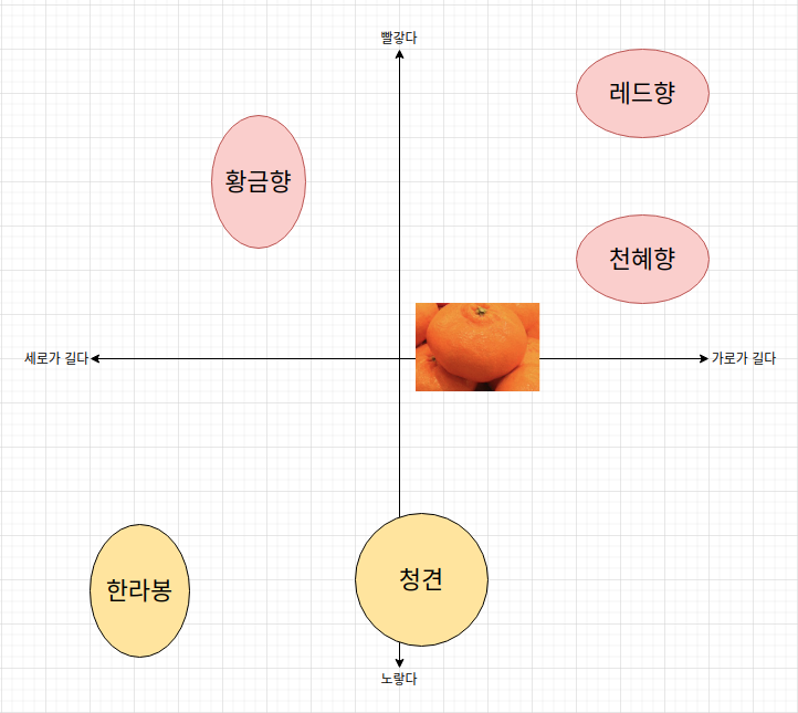 그리고 위의 그래프에서 위치를 잡아보면 천혜향에 가장 가깝다는 것을 확인할 수 있다.